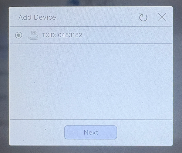 Trigger the smoke detector. Press the test button on the smoke detector or fault the tamper to transmit a signal. Once detected, the device's TXID appears on the screen. Verify that it matches the TXID of the smoke detector you're programming. Once you've confirmed, tap the radio button next to the TXID, then tap Next.