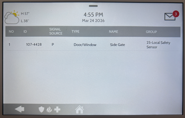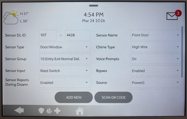 Tap Add New. To save the programming and complete enrollment tap Add New. The panel saves the sensor configuration and returns to the Auto Learn screen, ready to enroll the next sensor. Repeat steps 5 through 7 for each additional sensor you need to add.