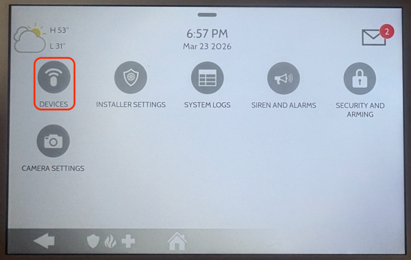 Enter security sensor programming. Select Installation, then Devices, and then Security Sensors. The Security Sensors menu opens, displaying options for Auto Learn Sensor, Add Sensor, Edit Sensor, Delete/Replace Sensor, Sensor Status, and Sensor Group. If you enter Advanced Settings and you don't see the option for Installation, you've logged in using the Master Code instead of the Installer Code. In that case, you'll see Master Settings instead of Installation.