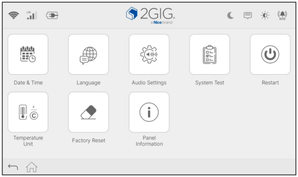 The 2GIG GC Touch panel (available in AT&T LTE and a Verizon LTE versions) features a built-in speaker for voice, and a built-in piezo buzzer for beeps and other alarm sounds. The panel provides seven separate volume categories for customizing audio feedback. This allows you to set your preferences for chimes, voice prompts, and system alerts.