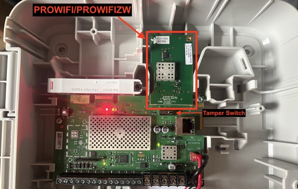Enable Bluetooth pairing on the panel. If you just installed the WIFI module and the cover is still off the panel, but more than 30 minutes have passed, press and release the panel’s tamper switch to re-enable Bluetooth. It remains active for 30 minutes once the tamper switch is released. The tamper switch is located on the main panel board, just under the PROWIFI or PROWIFIZW module.