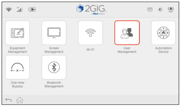 Tap User Management. The panel displays a list of all standard user accounts configured on the panel. It also shows a separate tab for Special (Duress) Users.