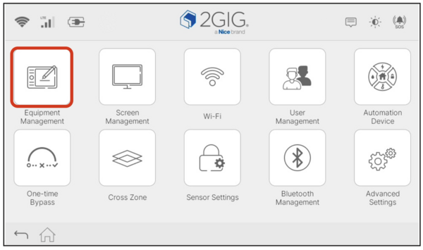 Tap Equipment Management. This option appears in the Settings menu after entering your code.