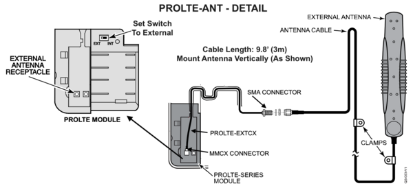 If your PROLTE-A2 or PROLTE-V2 LTE communicator has weak signal strength, an antenna can be added to improve it. The PROLTE-ANT is an indoor/outdoor antenna with a 9.8' (3m) cable included.
