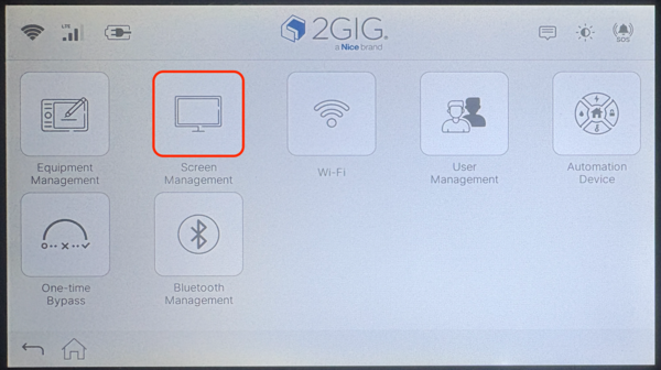 To use Clean Screen on the 2GIG GC Touch, access Screen Management from the Settings menu and tap Clean Screen. This disables the touchscreen for 30 seconds while a countdown displays, allowing you to safely wipe away fingerprints and smudges without accidentally triggering panel functions.
