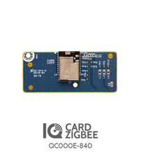 The QC000E-840 is an add-on Zigbee card that is made for the IQ Panel 4, IQ4 Hub, and the IQ4 NS. It is also compatible with the IQ Panel 5 and family of panels. It allows the panel to communicate with Zigbee devices. It adds support for compatible Zigbee automation and Zigbee security RF devices. It is an after-market add-on that must be installed inside the alarm panel.